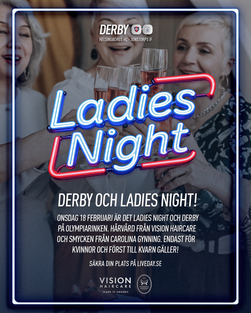 Under onsdagens derby på Olympiarinken laddar vi upp med en riktigt härlig Ladies Night. En kväll bara för kvinnor, med inspiration och gemenskap i fokus. Antalet platser är begränsat.