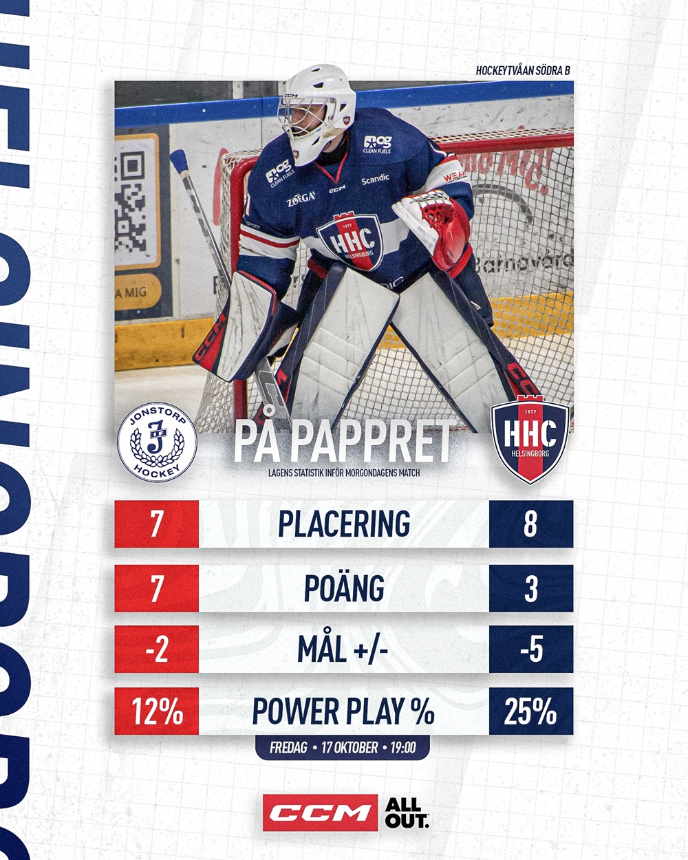 För Helsingborg gäller det framför allt att få utdelning på sina chanser. Laget har ofta varit spelförande, men ineffektiviteten har kostat många poäng. Assisterande tränare Albin Hakelid betonade inför matchen mot Värnamo att små misstag har blivit dyrbara och lett till onödiga underlägen. Mot Jonstorp handlar det därför om att kliva ut med energi redan från första nedsläppet, sätta dit ett par puckar och bygga upp självförtroendet igen. Gör man det finns såklart alla möjligheter att ta tre poäng.